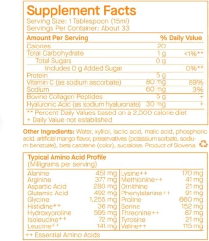 SpoiledChild Collagen Peptides + Vitamin C + Hyaluronic Acid Liquid Collagen Mango Flavor 450 ml (15.2 Fl oz)